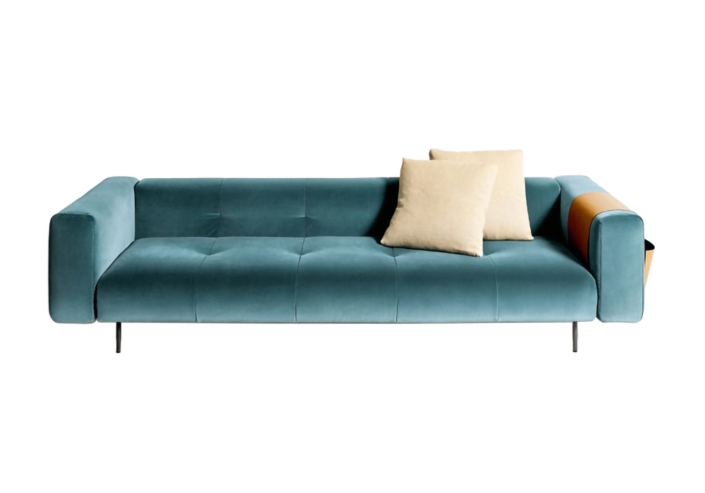 Erei firmato da Elisa Ossino per DePadova è un divano con struttura portante in legno con cinghie elastiche. I piedini sono in acciaio verniciato a polvere color canna di fucile o color mattone con sottopiede regolabile in materiale termoplastico. L'imbottitura è in poliuretano espanso a quote differenziate, memory foam e ovatta di poliestere foderato con vellutino di poliestere con rivestimento in tessuto sfoderabile o pelle fisso. Cuscinatura poggiatesta in poliuretano espanso e in ovatta di poliestere, foderato con vellutino di poliestere. Tasca per bracciolo in pelle con supporto posteriore antiscivolo. Erei è disponibile in differenti modelli e finiture.
