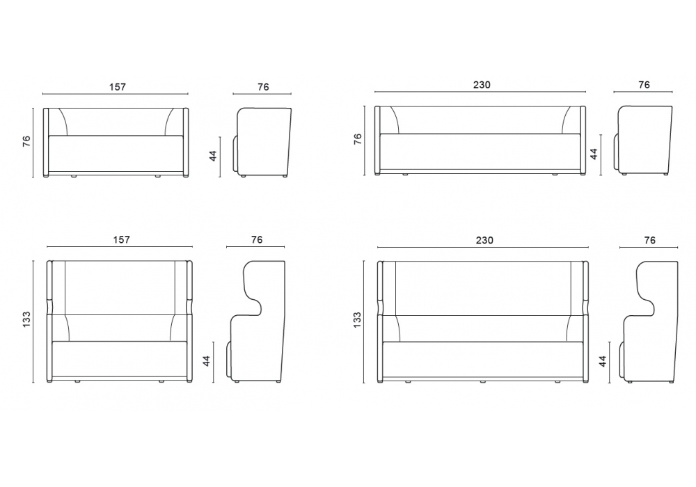 | Dimensioni | 503_ 157 x 76 x H 76 cm; 505_ 230 x 76 x H 76 cm; 504_ 157 x 76 x H 133 cm; 506_ 230 x 76 x H 133 cm; |