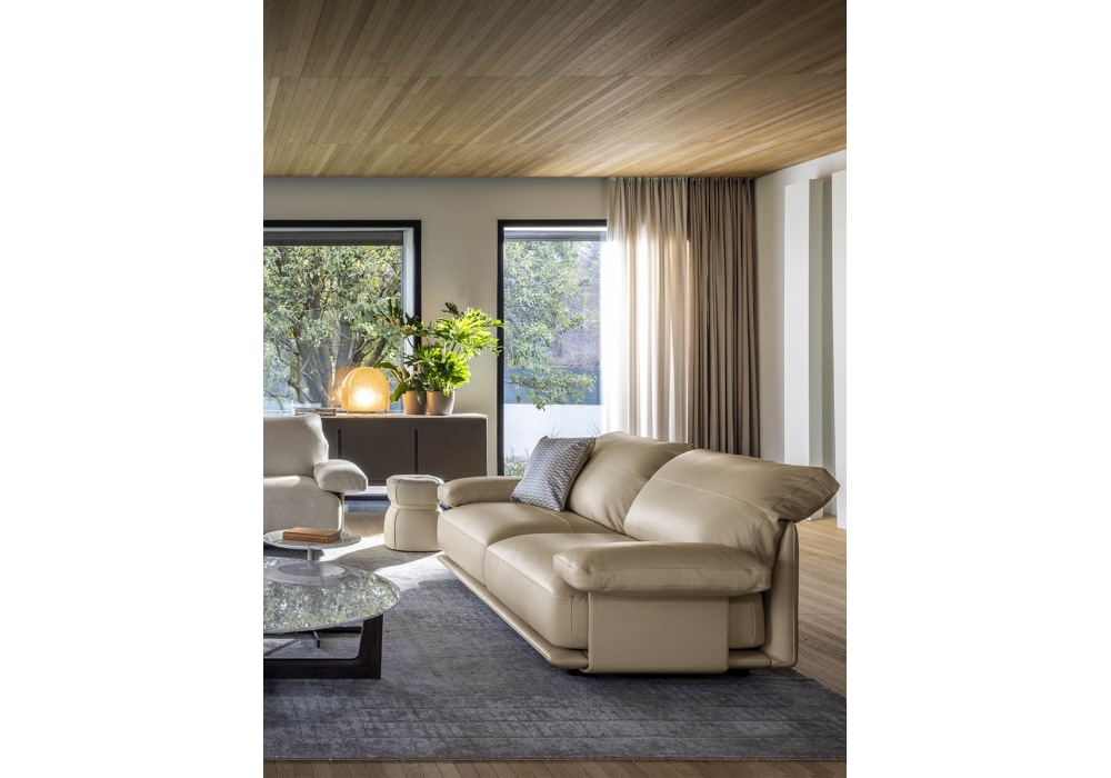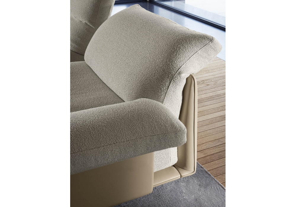 Blisscape firmato da Ludovica Serafini + Roberto Palomba per Poltrona Frau è un divano lineare o modulare con telaio metallico su cui poggia la struttura in massello di Faggio e Pioppo e multistrato di Betulla, leggermente imbottita e rivestita in Pelle Frau®. La piattaforma in pelle accoglie la ricca cuscinatura sfoderabile di seduta, schienale e bracciolo, che può essere anch’essa rivestita in Pelle Frau® o in tessuto. Ogni cuscino dello schienale è a reclinazione regolabile grazie a un meccanismo a baionetta, e l’imbottitura ad aree differenziate è realizzata con una tecnologia simile a quella dei materassi, per favorire la traspirazione, la morbidezza e il mantenimento della forma.