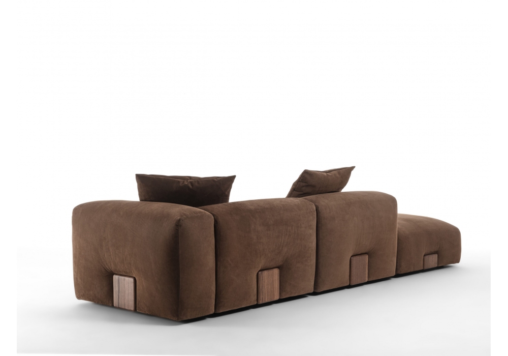 Koji firmato da Giuseppe Viganò per Porada è un divano modurale con struttura in massello di noce canaletta o frassino e rivestimento sfoderabile in tessuto e non sfoderabile in pelle. Imbottitura in poliuretano espanso a quote e densità differenziate. L’imbottitura presenta maggiore rigidità nella parte inferiore garantendo stabilità e uno strato di schiuma superiore a bassa portanza, altamente traspirante e con una deformazione residua minima.
