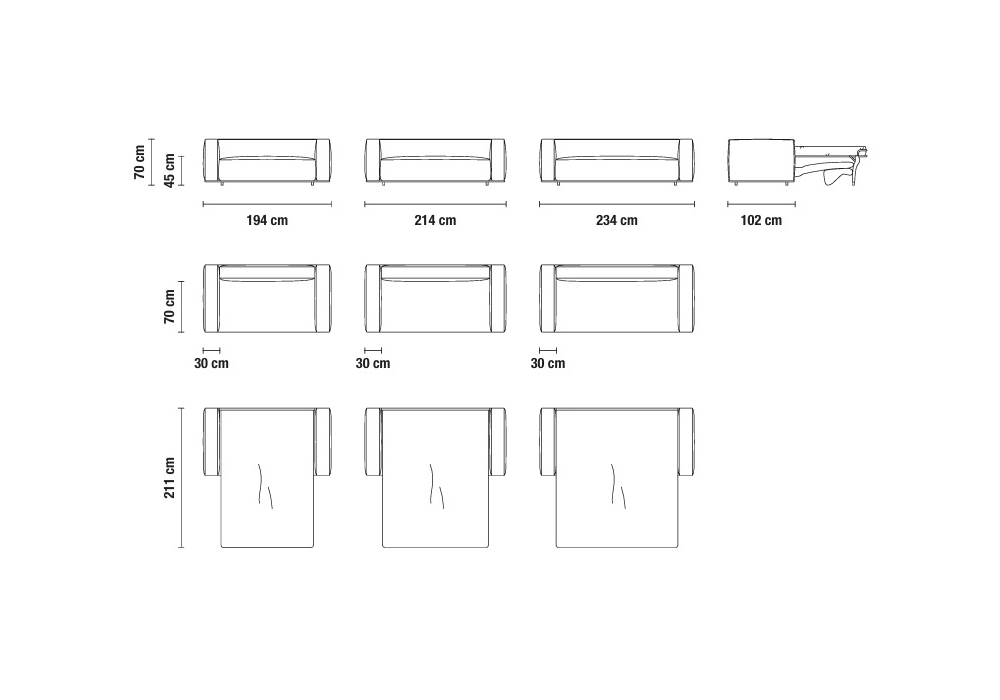 Ritz firmato da Giulio Manzoni per Campeggi è un divano letto, con struttura in legno e molleggio elastico in cinghie di gomma e lattice naturale. Il meccanismo letto in acciaio verniciato a polveri epossidiche consente un’apertura sincronizzata tramite ribaltamento dello schienale, con rete in maglia di acciaio elettrosaldata. L’imbottitura è in poliuretano espanso a densità differenziata senza CFC e ovatta poliestere. La base in acciaio è disponibile in finitura satinata, blu petrolio opaco o nero opaco. Include un materasso in espanso H 16 cm, a doppia densità, sfoderabile, traspirante, ortopedico, naturale e anatomico.