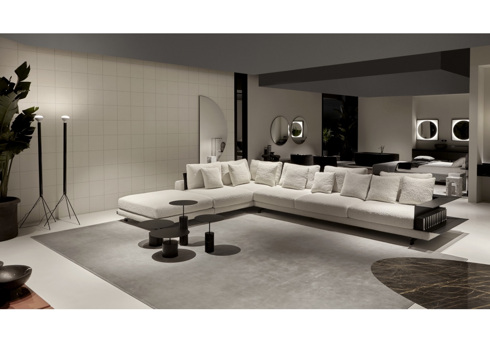 Neverland firmato da Carlo Colombo per Antonio Lupi è un divano realizzato con fusto interno in multistrato e massello di abete, poliuretano espanso in varie densità, resinato accoppiato. Imbottitura cuscini schienale in piuma d'oce e rivestimento in tessuto o pelle parzialmente sfoderabile. Basamento in alluminio pressofuso verniciato cromo nero.