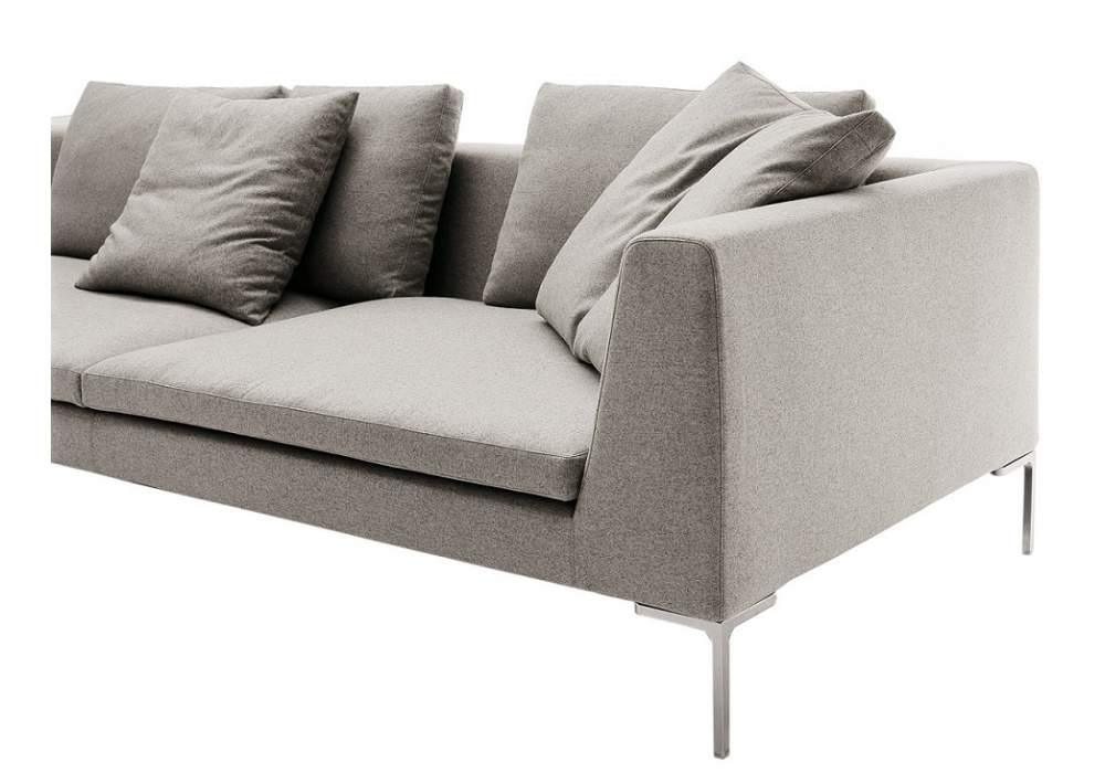 Charles Large firmato da Antonio Citterio per B&B Italia è un divano con telaio interno in tubolari e profilati d'acciaio ed imbottitura in schiuma di poliuretano flessibile a freddo Bayfit®, fodera in fibra di poliestere. Rivestimento in differenti tessuti o pelli.