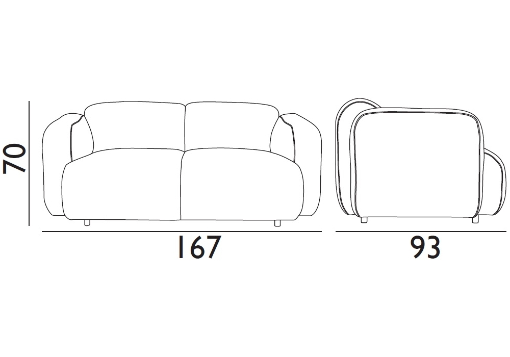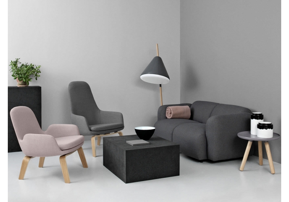 Swell, firmata da Jonas Wagell per Normann Copenhagen è un divano a due posti, con struttura in legno e schiuma HR rivestiti in differenti tipi di tessuto. Le gambe sono in legno di frassino verniciato e laccato.