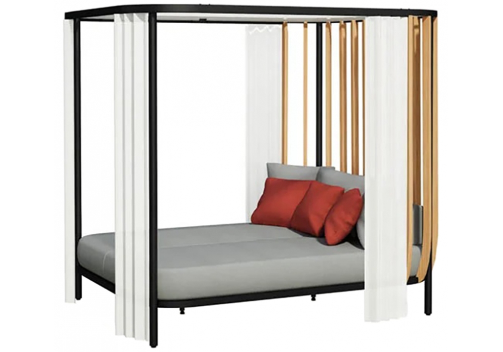 Swing firmato da Patrick Norguet per Ethimo è un daybed con struttura in alluminio verniciato e legno teak. La cuscinatura è in tessuto acrilico. Swing è disponibile in differenti finiture.