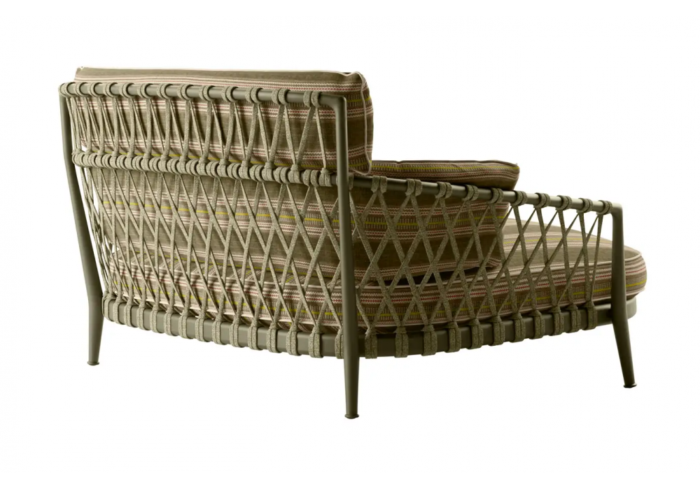 Erica firmato da Antonio Citterio per B&B Italia Outdoor è un daybed con struttura in alluminio verniciato e intreccio in fibra di polipropilene in vari abbinamenti di colori. Rivestimento cuscinatura in tessuto con la possibilità di scegliere diverse finiture/ tessuti per i cuscini seduta e schienale.
