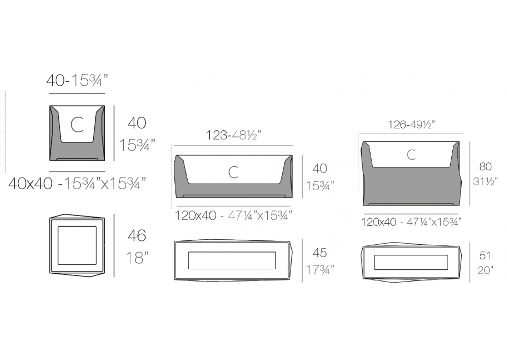 | Dimensioni | 40 x 46 x 40 cm; 123 x 45 x 40 cm; 126 x 51 x 81 cm. |