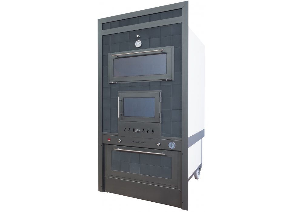 La camera di cottura è in acciaio inox AISI 304 su 2 livelli, dotata di ventilazione e illuminazione. Maniglieria in acciaio inox spazzolato con dettagli in legno e chiusura a scatto.