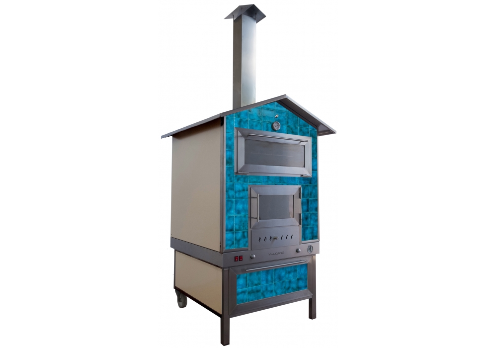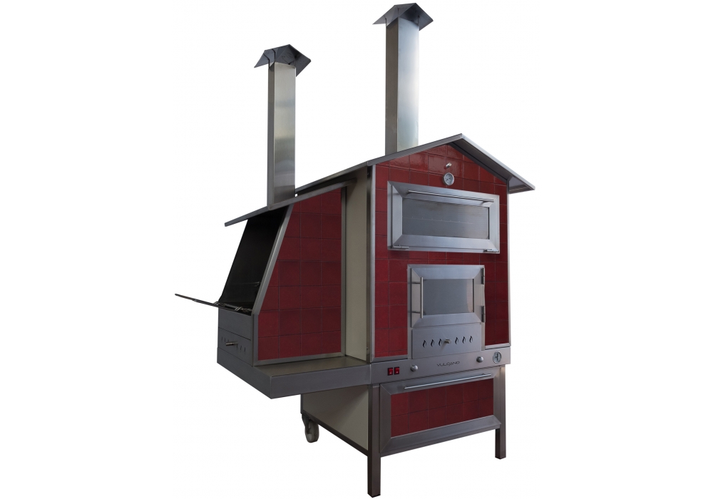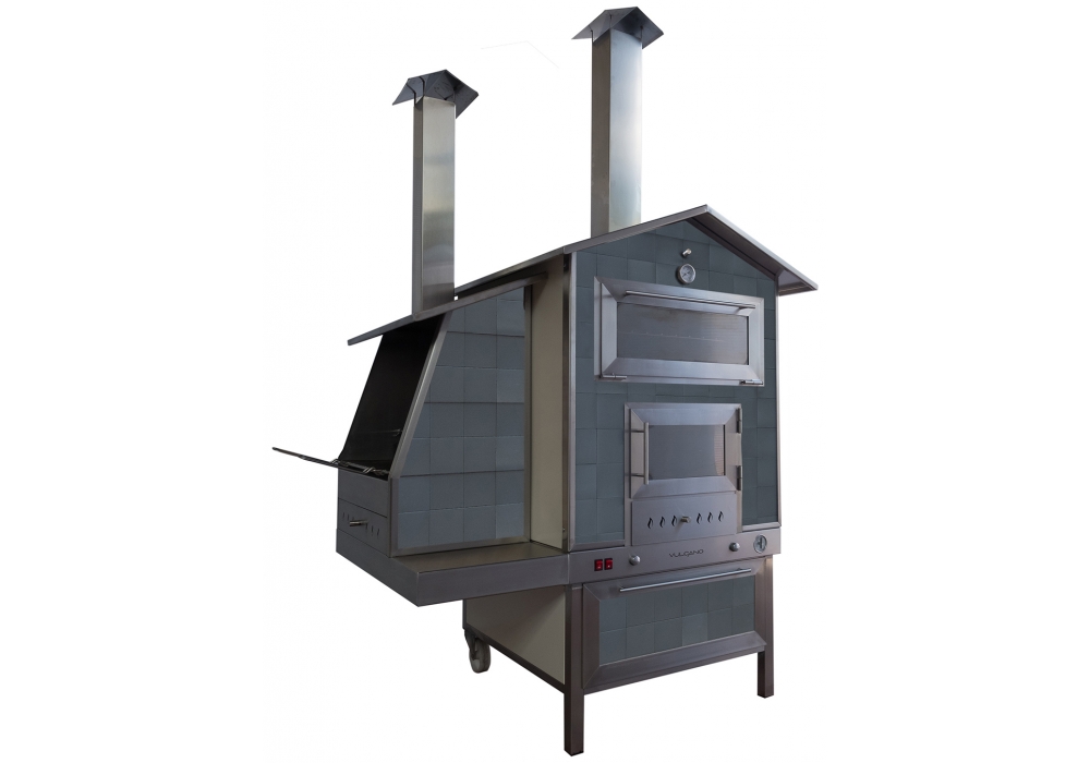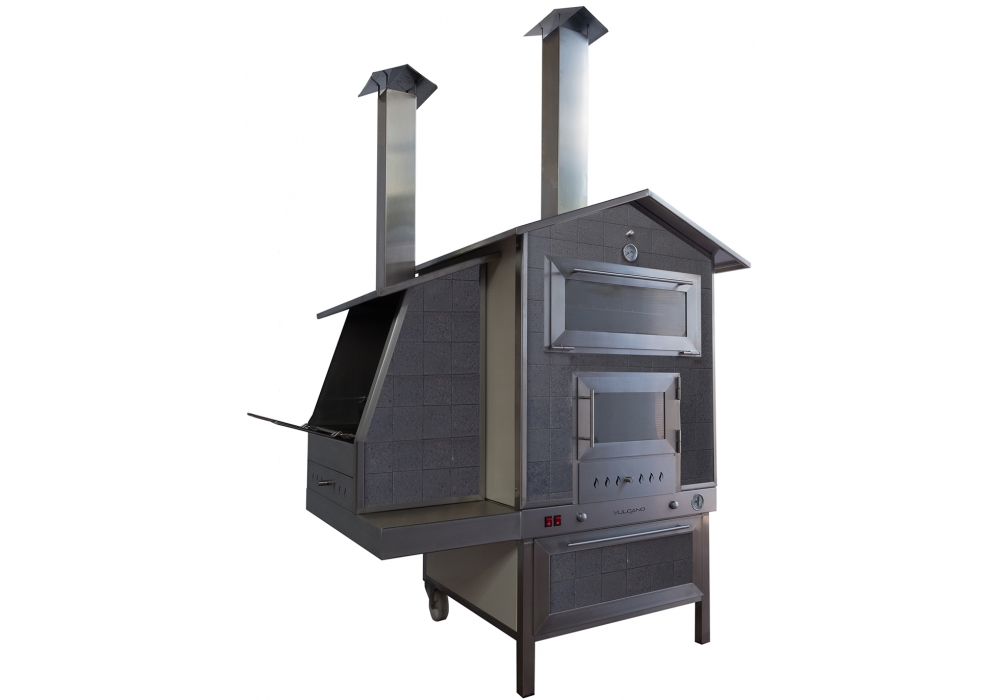 La struttura esterna del forno è disponibile nella versione fuego inox: con struttura esterna in acciaio inox AISI 304. La camera di cottura è in acciaio inox AISI 304 su 2 livelli, dotata di ventilazione e illuminazione. Maniglieria in acciaio inox spazzolato con dettagli in legno e chiusura a scatto.