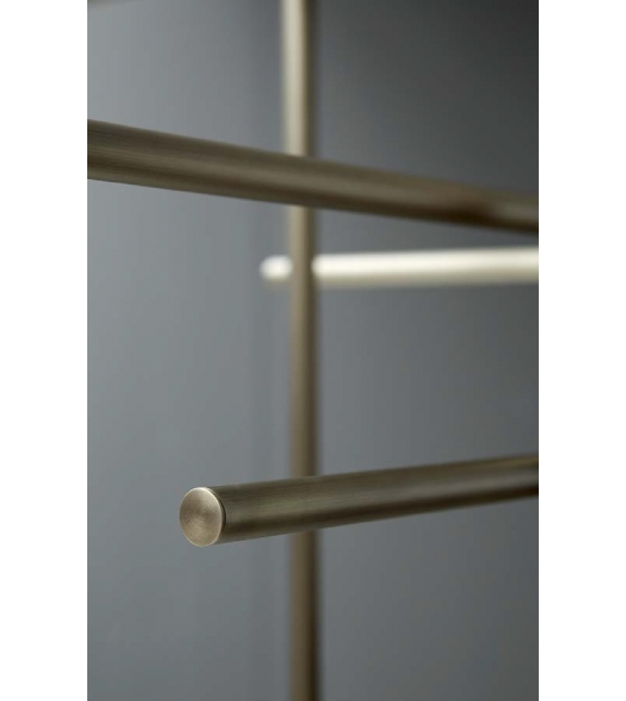 Kitami firmata da Massimo Tonetto per Venicem è una lampada a sospensione con struttura in ottone brunito. Diffusori in vetro satinato.