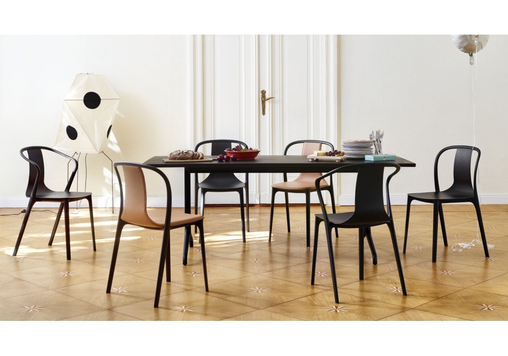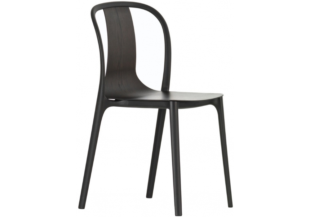 Belleville Armchair Wood firmata Ronan & Erwan Bouroullec per Vitra è una poltrona impilabile con scocca in legno multistrato curvato in rovere scuro e struttura di colore nero intenso.