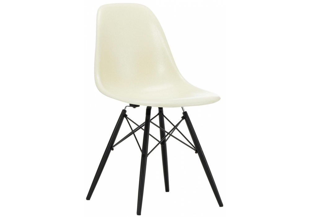 Eames Fiberglass Chair DSW firmata da Charles & Ray Eames per Vitra è una sedia con scocca in poliestere rinforzato con fibra di vetro e base in acero nero. Disponibile con scocca nei seguenti colori: 01 Eames Parchment e 03 Eames Red Orange.