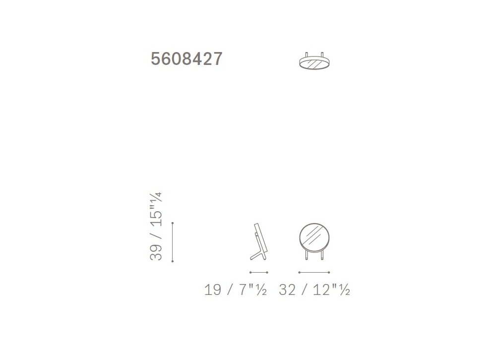 Ren firmato da Neri & Hu per Poltrona Frau è uno specchio da tavolo con cornice in ottone rivestita in cuoio Saddle Extra Carbone e retro in noce Canaletto.
