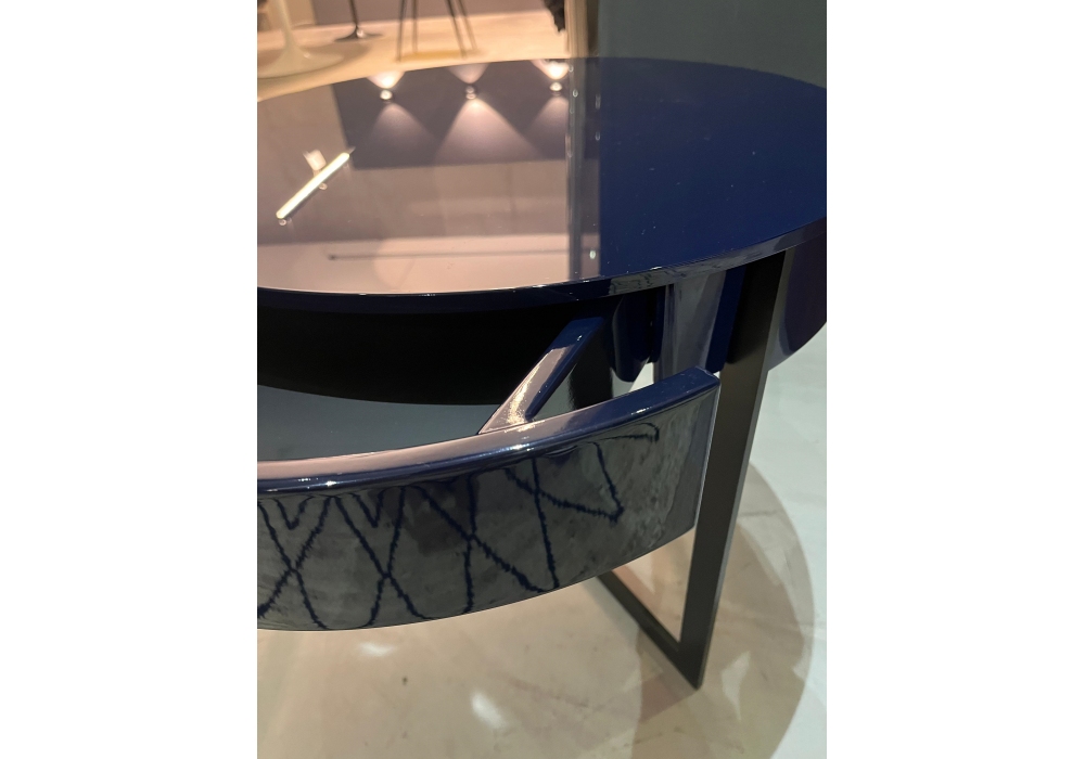 Sign firmato da Studio Kairos per Lema è un comodino con struttura in metallo verniciato colore bronzo o cromato lucido. Il piano e il cassetto è disponibile con finitura laccata opaca o lucida.