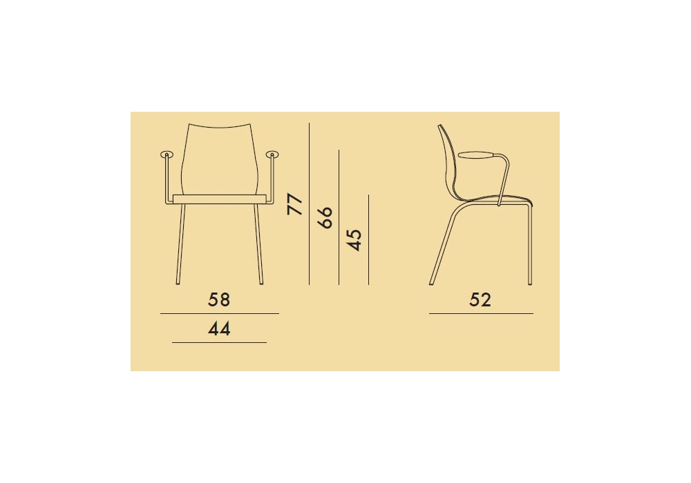 Maui firmata da Vico Magistretti per Kartell è una poltroncina con seduta e schienale in polipropilene e struttura in acciaio inox.