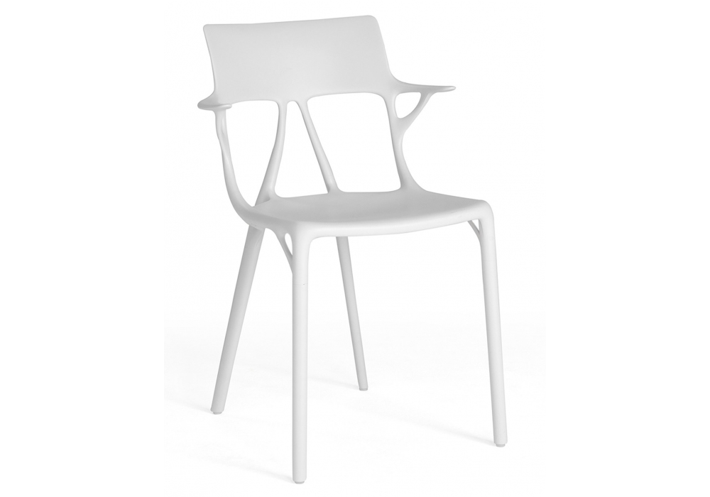 A.I. firmata da Philippe Starck per Kartell è una sedia realizzata in tecnopolimero termoplastico riciclato al 100% con carica minerale.