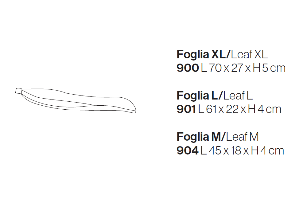 | Dimensioni | 900_ 70 x 27 x H 5 cm; 901_ 61 x 22 x H 4 cm; 904_ 45 x 18 x H 4 cm. |