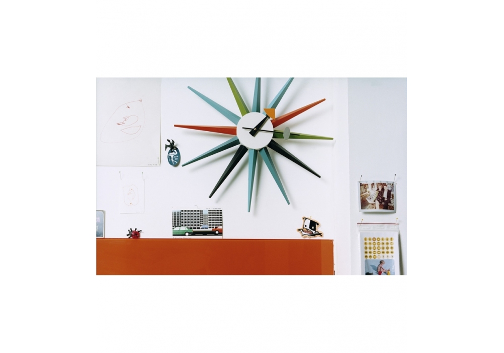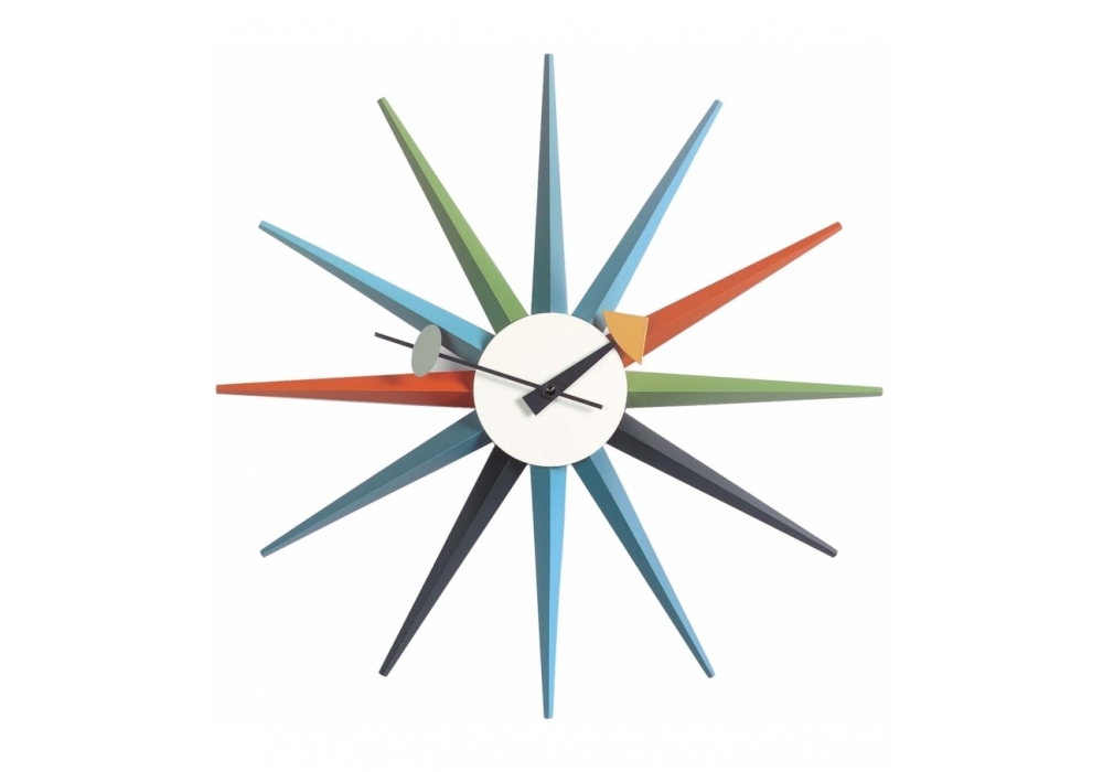 Sunburst Clock firmato da George Nelson per Vitra è un orologio realizzato con vari tipi di legno e metallo, finitura multicolore.