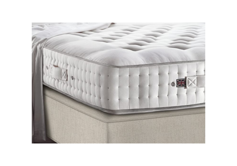 Regal Superb di Vispring è un materasso con struttura a molle insacchettate rivestite in puro cotone calicò disposte a mano. L'imbottitura è realizzata in misto di pura lana britannica, cotone e crine di cavallo sudamericano a fibra lnga. I bordi sono imbottiti con lana protettiva. Inclusi nel prezzo vi sono il coprirete e due guanciali in piuma d'anatra dei pinerei.