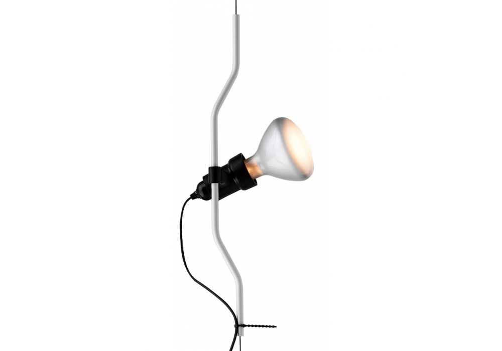 Parentesi firmata da Achille Castiglioni & Pio Manzù per Flos è una lampada a luce diretta. Il movimento verticale del corpo illuminante è ottenuto mediante lo scorrimento di un tubolare di acciaio sagomato, verniciato di colore nero, su un cavetto di acciaio teso tra il plafone e pavimento (lunghezza utile mm 4000).
