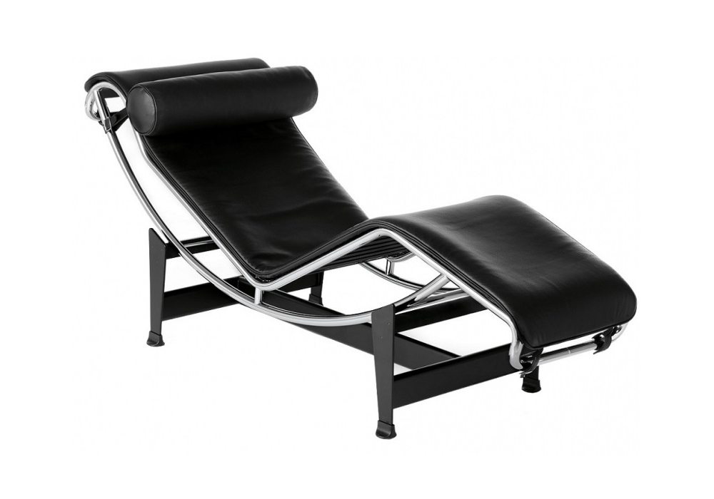 4 Chaise longue à Réglage Continu firmata da Le Corbusier, Pierre Jeanneret, Charlotte Perriand per Cassina è una chaise longue realizzata con scocca cromata, basamento nero opaco e materassino e poggiatesta in pelle.