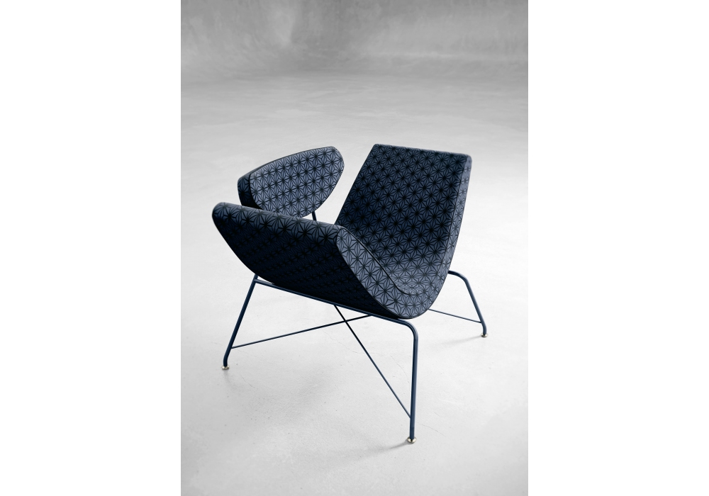 Reversível Millennium Limited Edition firmata da Martin Eisler per Tacchini è una poltrona con schienale in multistrato di pioppo, sedile con inserto in ferro e cinghie elastiche e base in metallo verniciata. Piedini in ferro cromati e rivestimento, non sfoderabile, in tessuto.