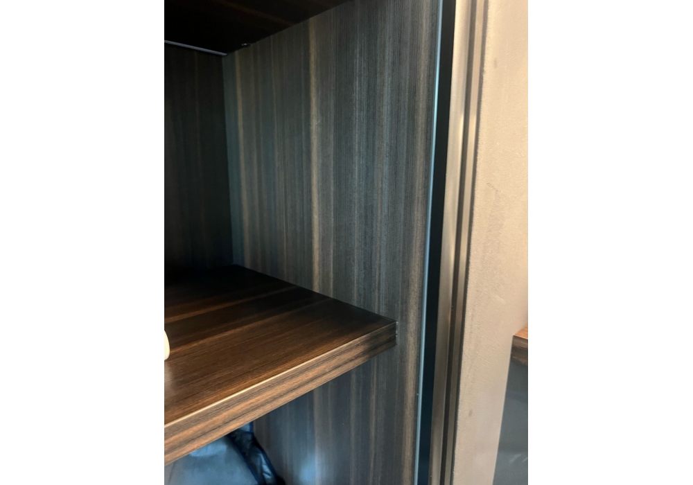 Gliss Master firmata da Vincent Van Duysen per Molteni&C è una vetrina incassata realizzata con schienale in larix moro e ante in vetro.