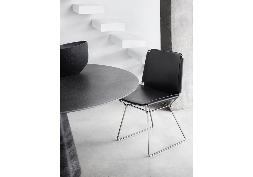 Neil Leather Chair firmata da Jean Marie Massaud per MDF Italia è una sedia con struttura portante realizzata in acciaio nella finitura cromo nero, e la scocca in cuoio.