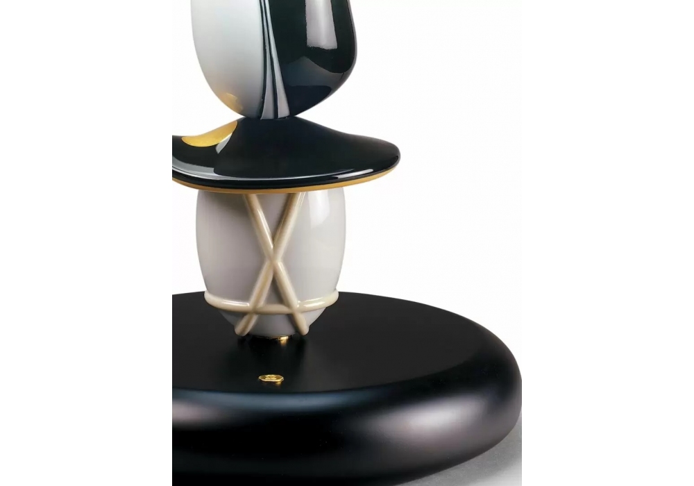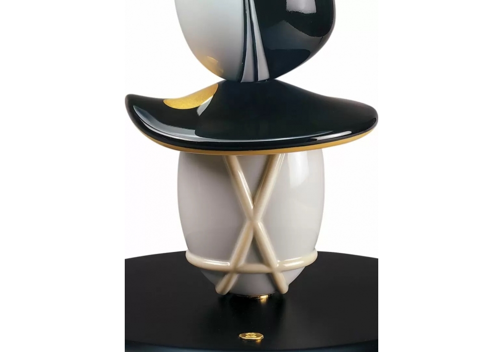 Hairstyle scolpita da Dept. Diseño y Decoración e firmata da Hisakazu Shimizu per Lladró è una lampada da tavolo con base circolare in legno laccato nero. Il corpo lampada è costituito da porcellana di colore nera e bianca con dettagli in oro, mentre il paralume è in vetro di murano soffiato.