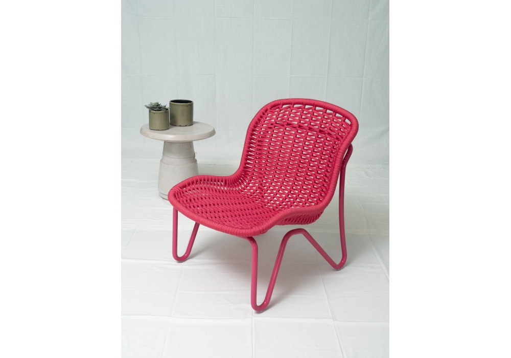 Jardín firmata da CRS Paola Lenti è una poltrona con rivestimento fisso intrecciato a mano con corde piatte in filato Twiggy. La struttura è in alluminio verniciato lucido coi puntali in materiale plastico. La collezione Jardín è un tributo all'architetto e designer Clara Porset.