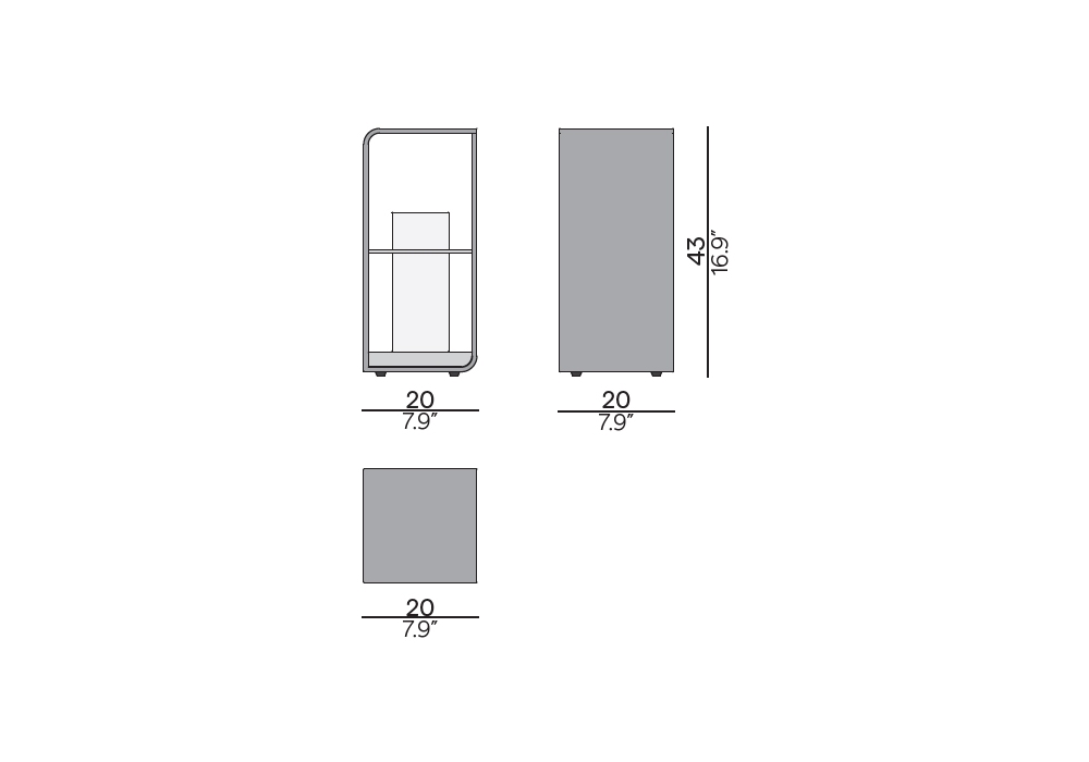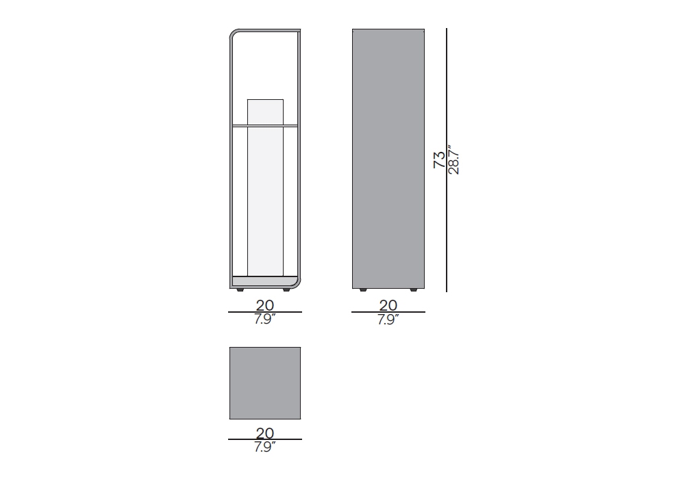 | Dimensioni | • 20 x 20 x H 28 cm; • 20 x 20 x H 43 cm; • 20 x 20 x H 73 cm |