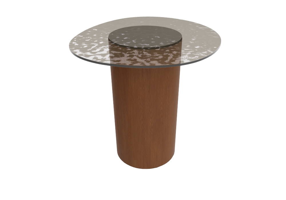 Mushroom firmato da Bernhardt&Vella per Calligaris è un tavolino d'appoggio con piano in vetro fuso e temperato e struttura impiallacciata noce.