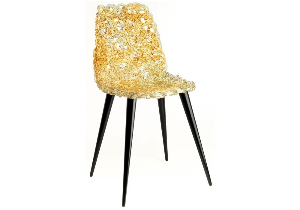 Gina firmata da Jacopo Foggini per Edra è una sedia realizzata in policarbonato lavorata a mano. Finitura oro.