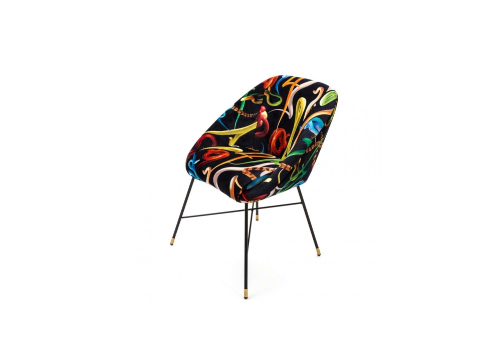Snakes firmata da Toiletpaper per Seletti è una sedia composta da imbottitura in poliuretano e rivestimento in poliestere. Struttura in legno multistrato con piedi in metallo.