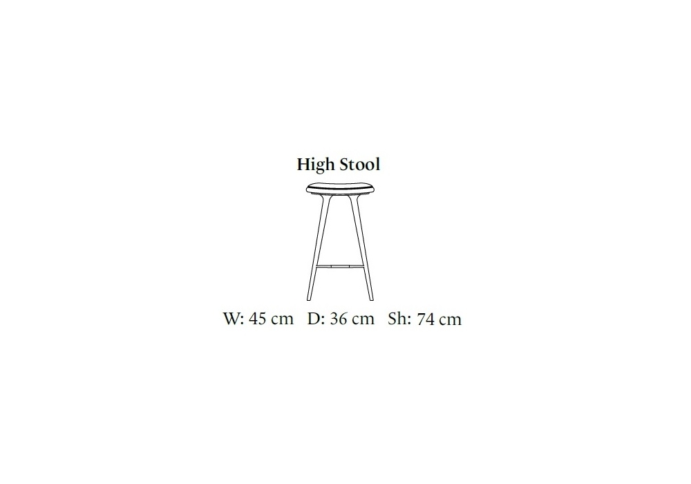High Stool firmato da Space Copenhagen per Mater è uno sgabello alto con struttura in rovere tinto scuro e seduta in pelle nera.
