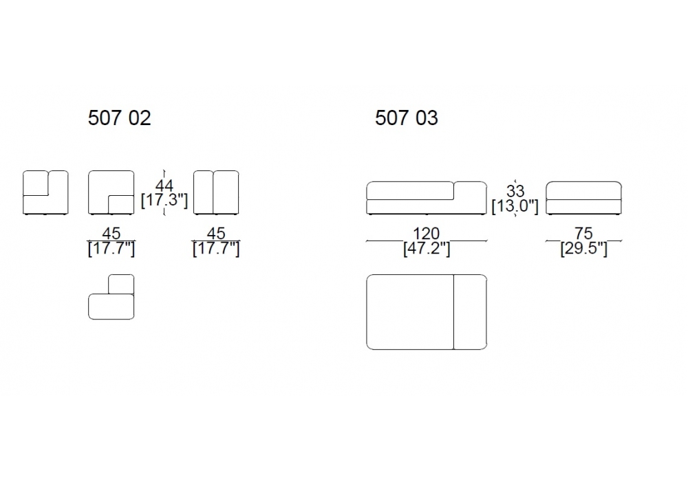 | Dimensioni | 45 x 45 x H 44 cm; 120 x 75 x H 33 cm. |