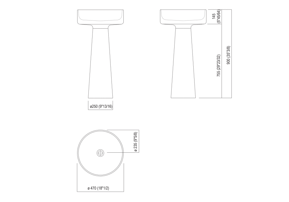 Bjhon 1 Outdoor firmato da Angelo Mangiarotti per Agape è un lavabo a colonna in marmo con superficie naturale e vellutata. Bacino cilindrico, senza foro per rubinetto, a scarico libero, compreso di kit di fissaggio.