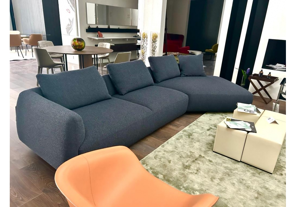 Naxos firmato da Ludovica + Roberto Palomba per Ferri 1956 è un divano con angolo terminale. Realizzato con telaio in legno massello di abete e pannelli di particelle di legno, con cinghie elastiche. Imbottitura in espanso a densità differenziate con rivestimento di ovatta, piedini in legno nero e rivestimento sfoderabile in tessuto.