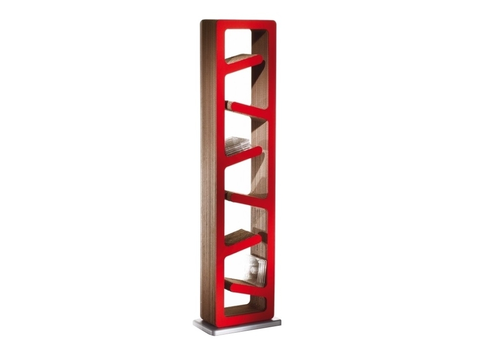 Traffic firmato da Kubedesign è un porta cd-dvd / libreria realizzata in cartone tridimensionale con basamento in legno.
