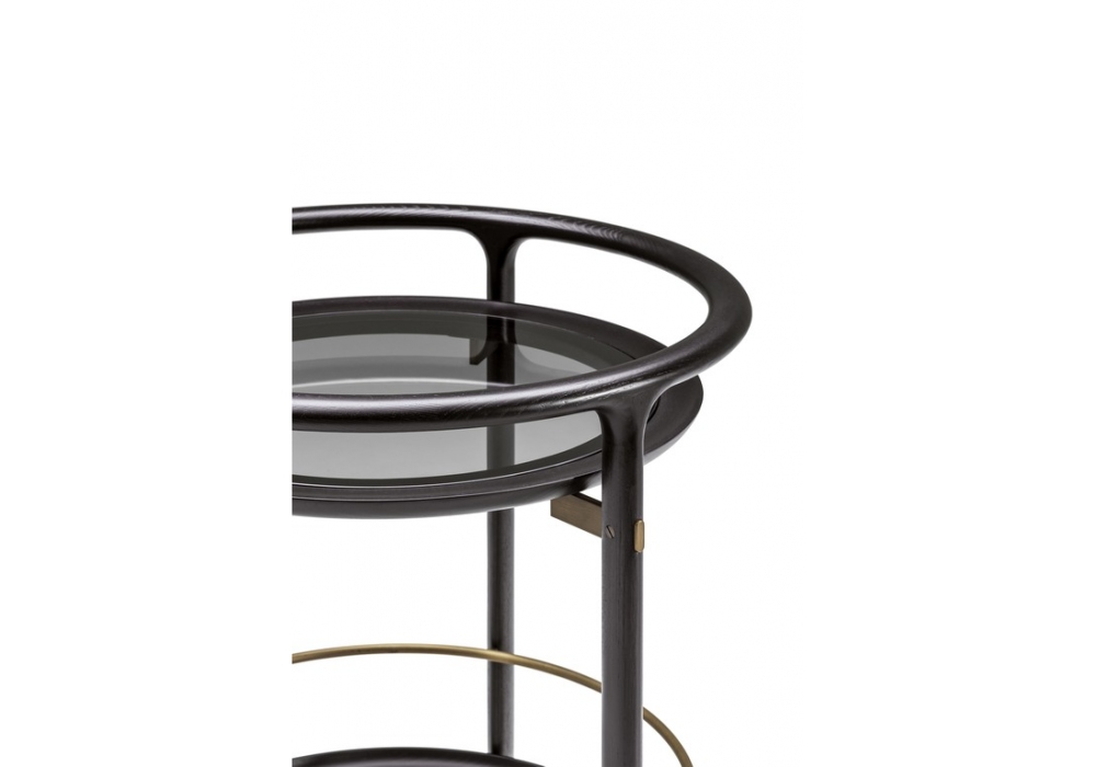 Duo Trolley disegnato da Roberto Lazzeroni per Poltrona Frau & Ceccotti Collezioni è un carrello composto da struttura in massello di frassino, piano in vetro e ripiano inferiore in marmo.
