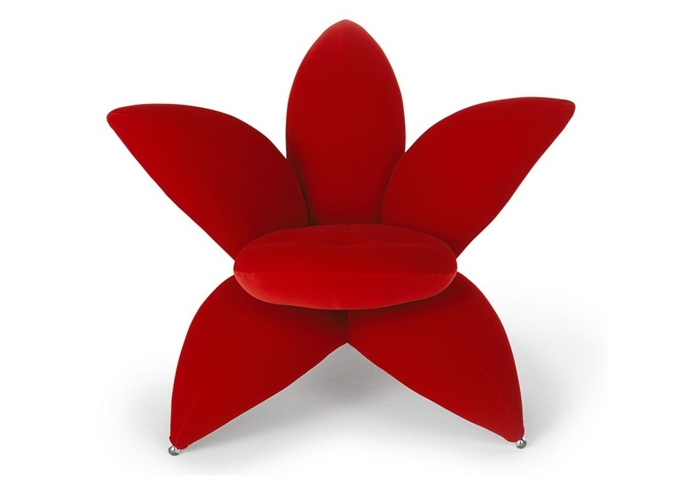 Getsuen firmata da Masanori Umeda per Edra è una poltrona a forma di giglio con struttura in acciaio modellato, medium density e multistrato di legno. Imbottitura in poliuretano espanso. Piedi in ottone cromato e ruote in PLT grigio.