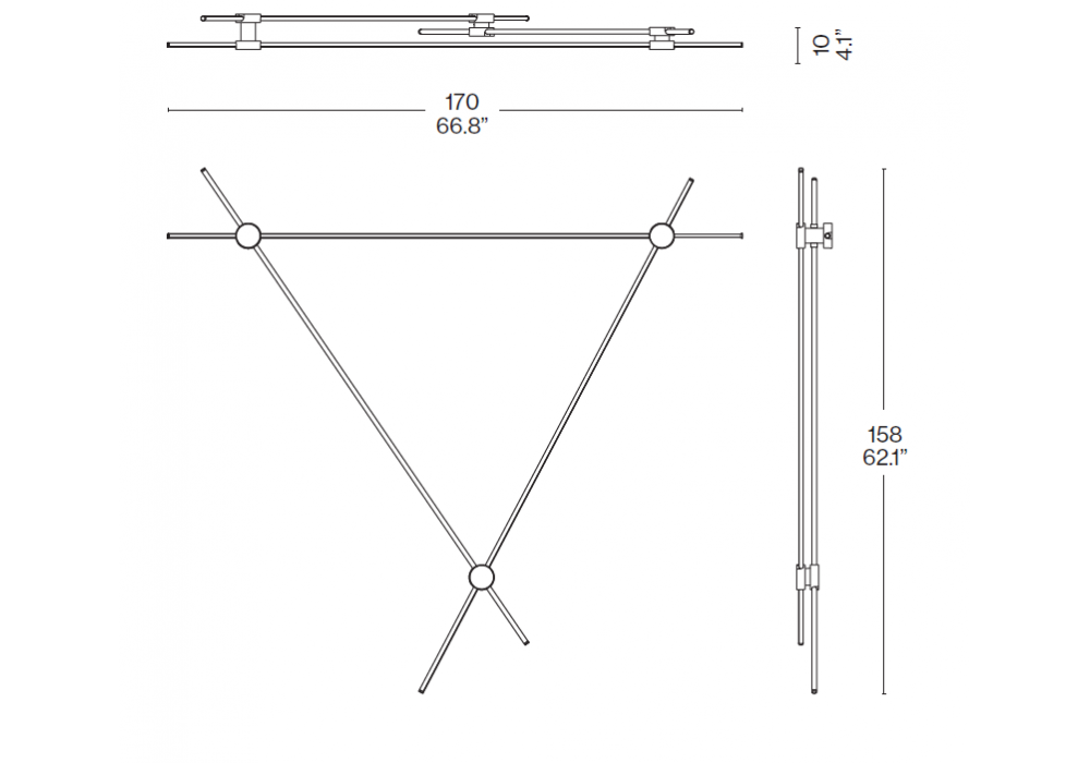 EITIE Triangle Vertical Wall firmata da Tobia Scarpa per Cassina è una lampada da parete realizzata in alluminio e PC, con giunti metallici laccati. Composta da tre strisce LED.