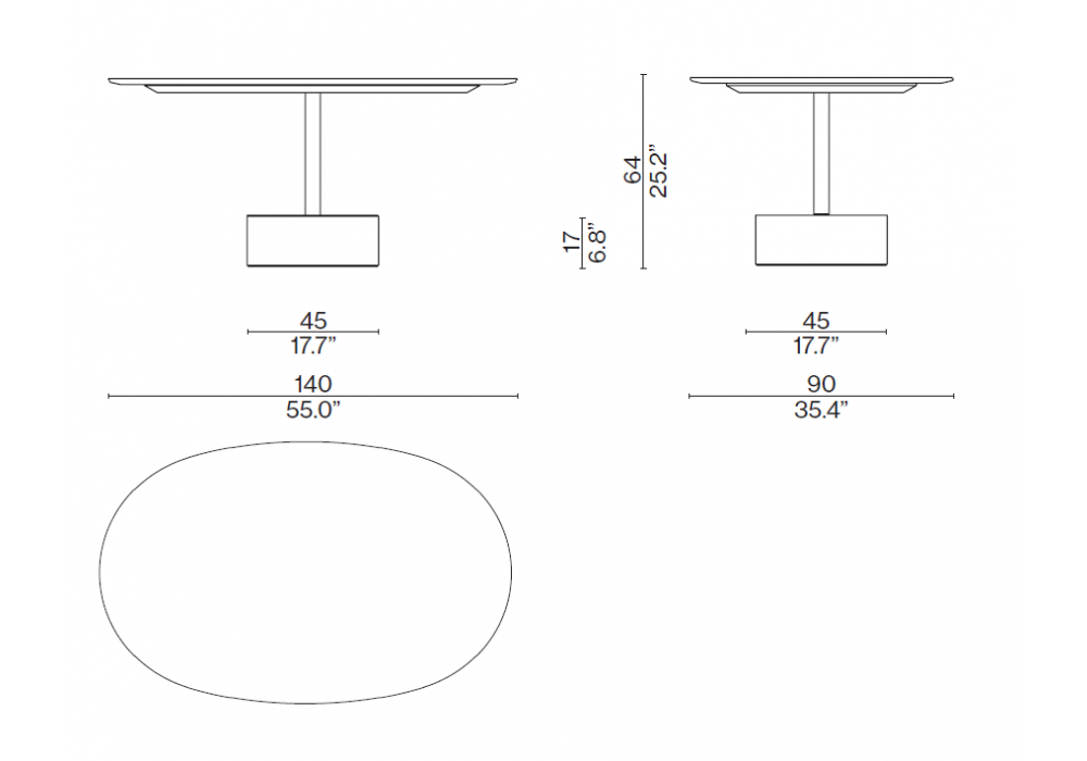 194 9 firmato da Piero Lissoni per Cassina è un tavolo ovale realizzato con base e piano in marmo, stelo in metallo.