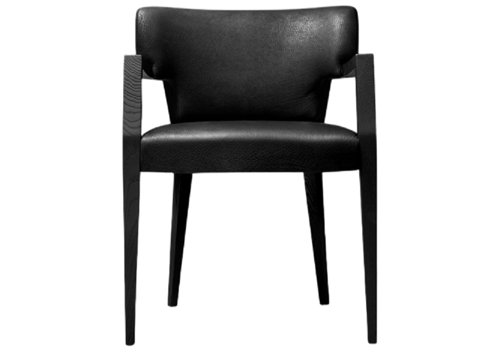 Mantis firmata da Ugo Cacciatori per Henge è una sedia con struttura realizzata artigianalmente in Black Wood. Seduta e schienale imbottiti e rivestiti in pelle.