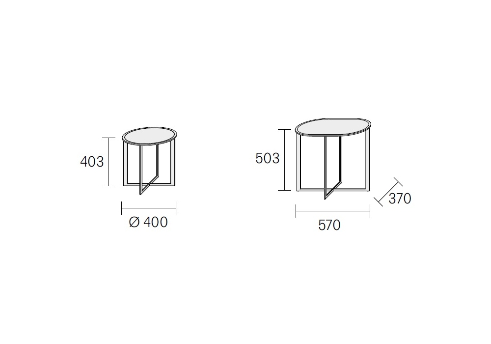 | Dimensioni | Ø 40 x H 40.3 cm; Ø 43 x H 50.3 cm; 57 x 37 x H 50.3 cm. |
