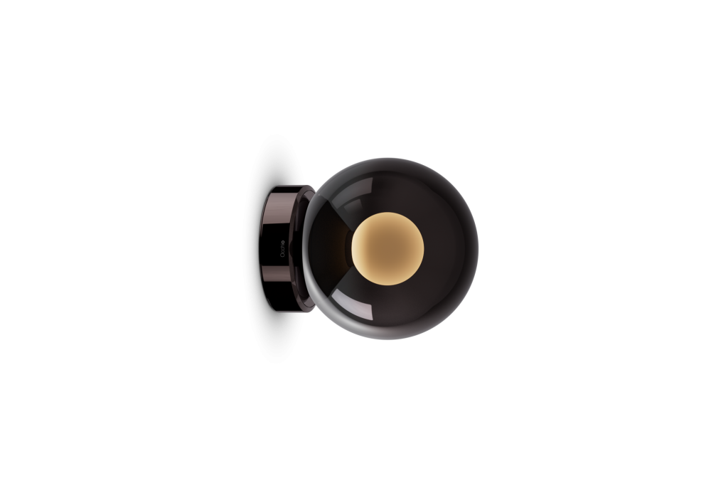 Luna Scura firmata da Occhio è una lampada da parete realizzata in alluminio verniciato, acciaio con rivestimento PVD, plastica e diffusore in vetro. Dimmerabile tramite Occhio air, dissolvenza da 2700 a 4000 K.