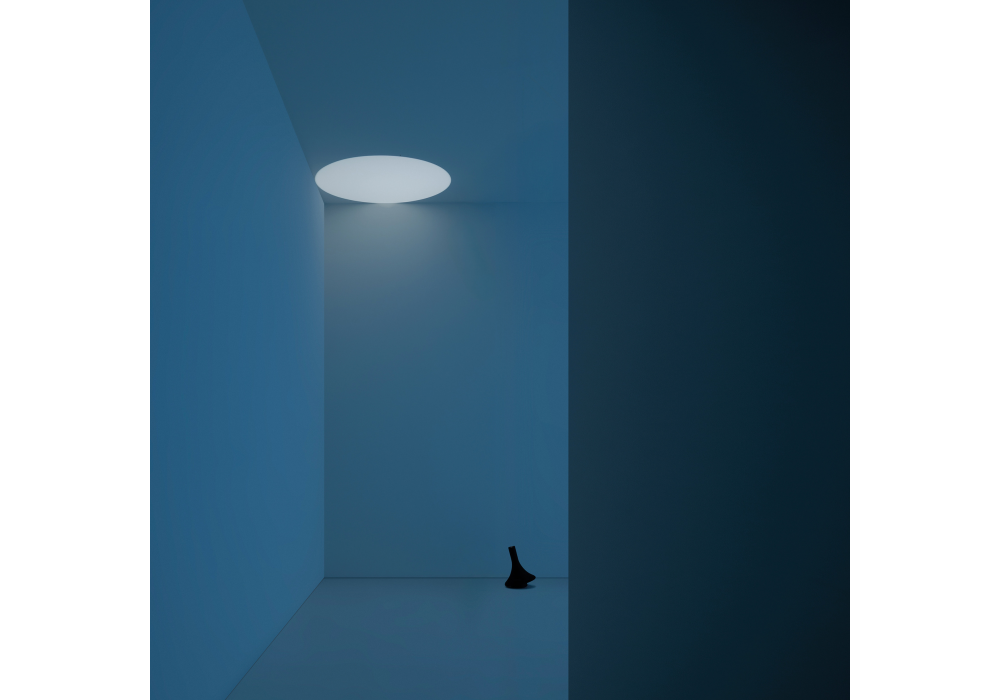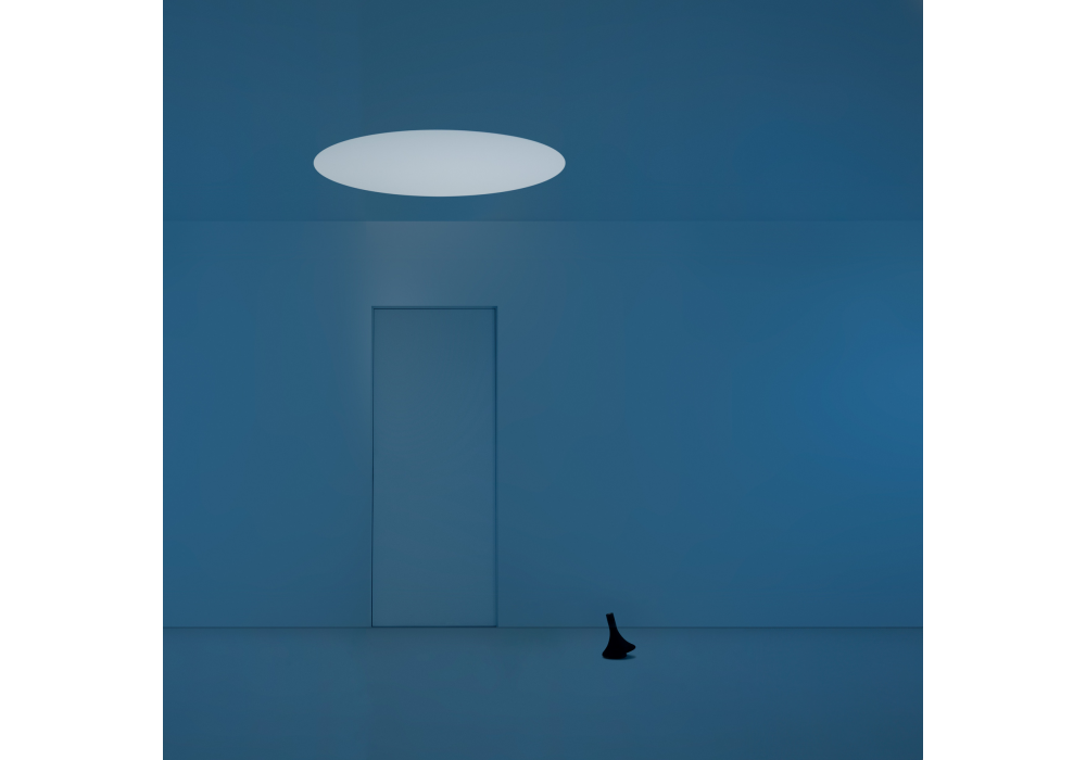 OneOff firmata da Omar Carraglia per Davide Groppi è una lampada da terra / tavolo realizzata in metallo in finitura Gravity Black. "Uno speciale sistema ottico mette perfettamente a fuoco un cerchio di luce sul soffitto e crea un effetto preciso, quasi metafisico."