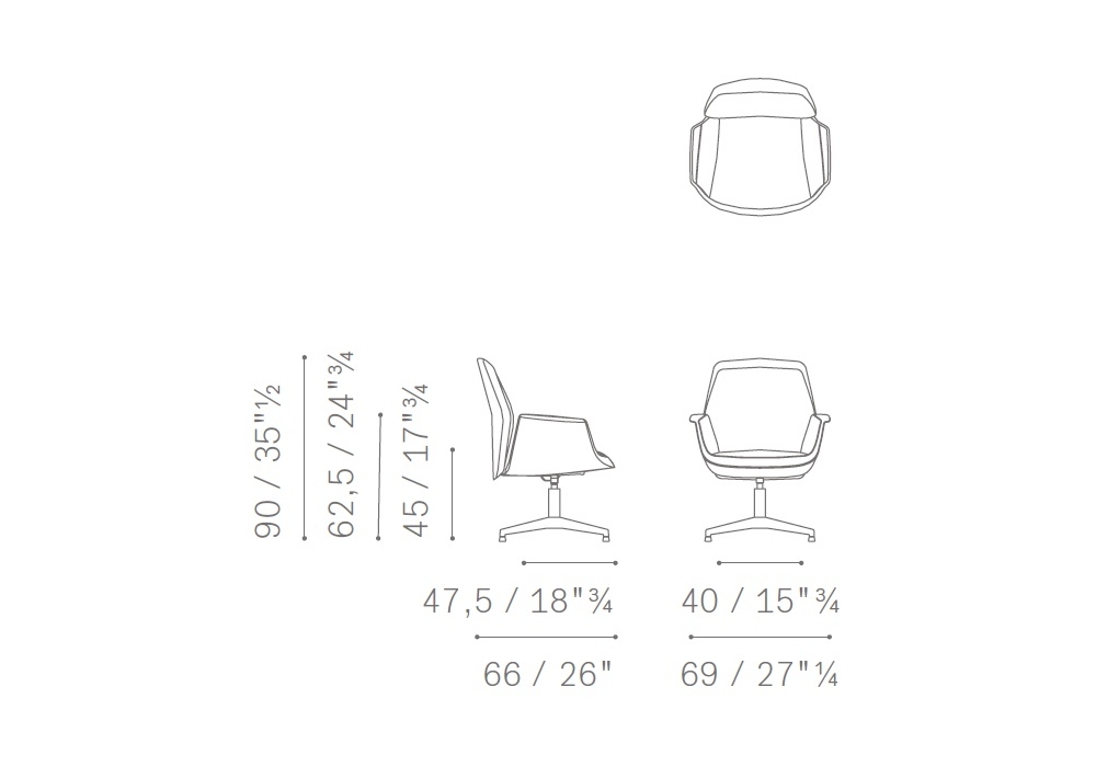 Downtown Visitor firmata da Jean-Marie Massaud per Poltrona Frau è una sedia / poltrona girevole da ufficio con rivestimento in Pelle Frau SC e base a 4 razze in alluminio nero.