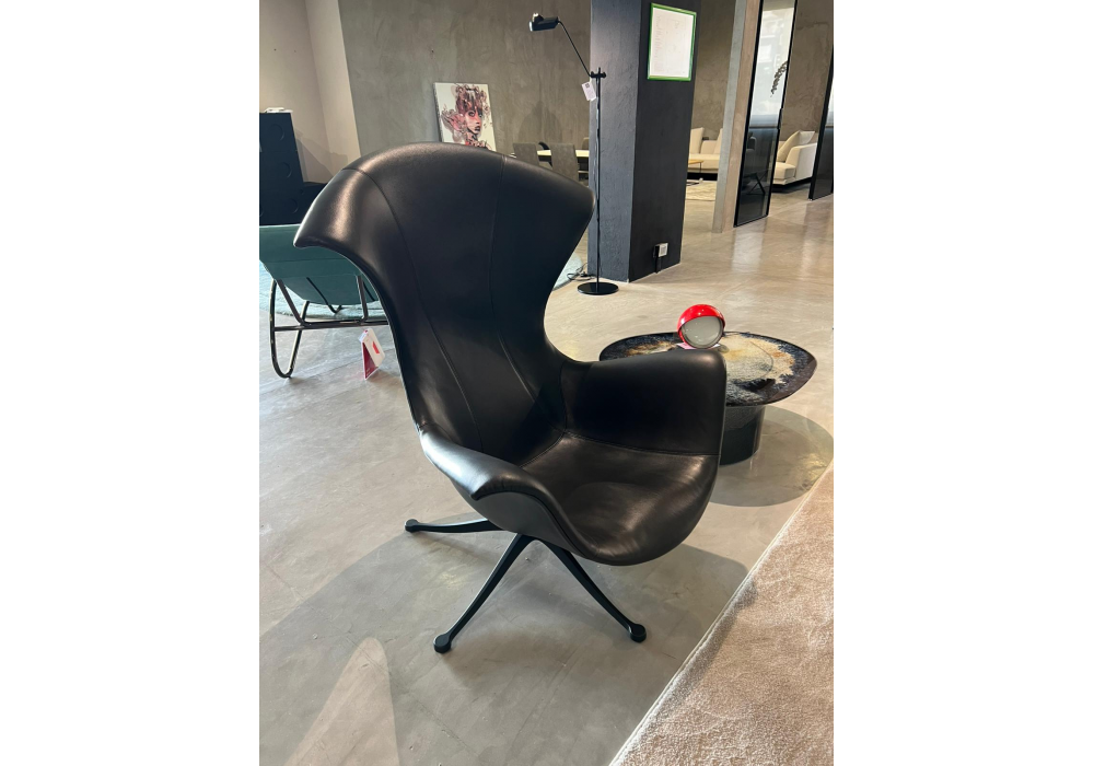 One Page firmata da Ron Arad per Moroso è una poltrona realizzata con struttura portante in poliuretano rigido per la parte esterna e l’imbottitura in poliuretano flessibile per quella interna. Rivestimento in pelle e base girevole a cinque razze in alluminio con meccanismo basculante.
