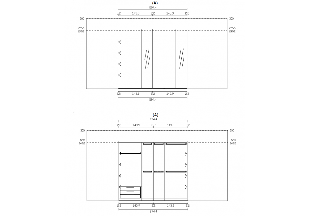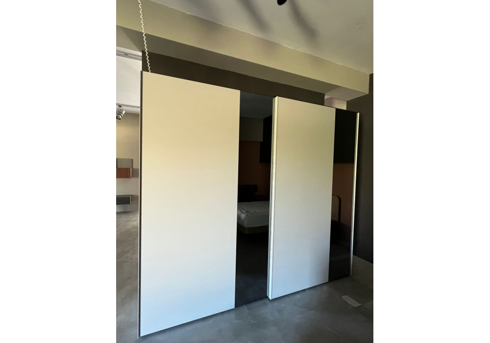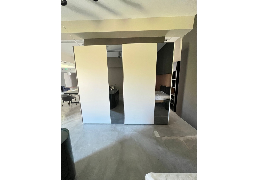 Poker 2.0 firmato da Alf DaFrè è un armadio con ante scorrevoli modello Costanza e ferramenta premium. Profilo in Tortora opaco, fianchi in nobilitato liscio Tortora e fascia centrale con specchio grigio. Interni in nobilitato Skin Effect con cassettiera a 3 cassetti abbinata. Maniglia “Z” e tubo appendiabiti in finitura Umber Shine. Inclusa barra LED scorrevole con trasformatore e spina.